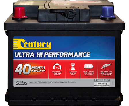 Century Ultra Hi Performance car and passenger vehicle batteries are designed to suit unique New Zealand conditions. They feature expanded plate designs, calcium/calcium technology and hard wearing internal components to reduce corrosion, gassing and water loss for premium level power and performance when it is needed the most.